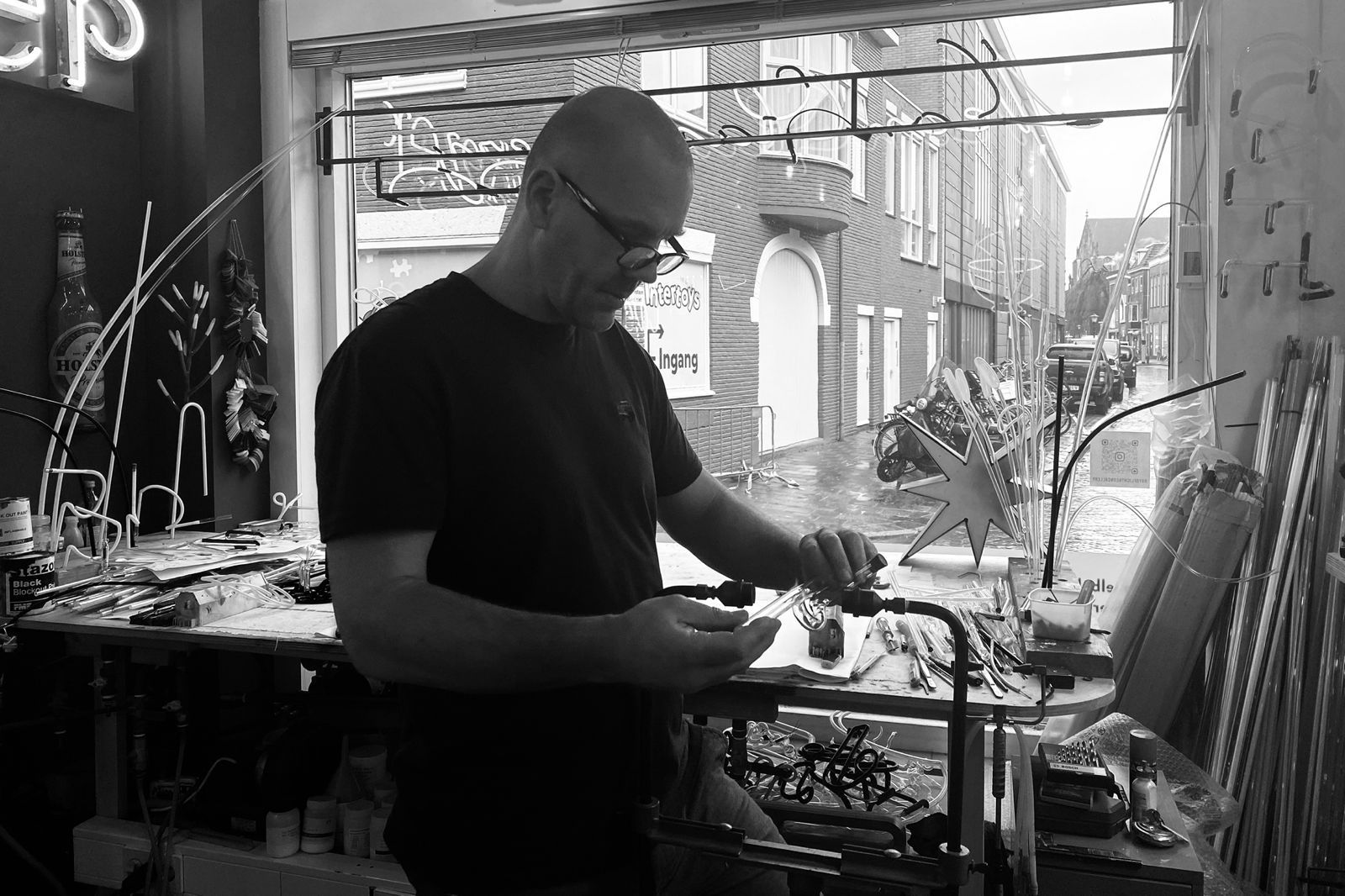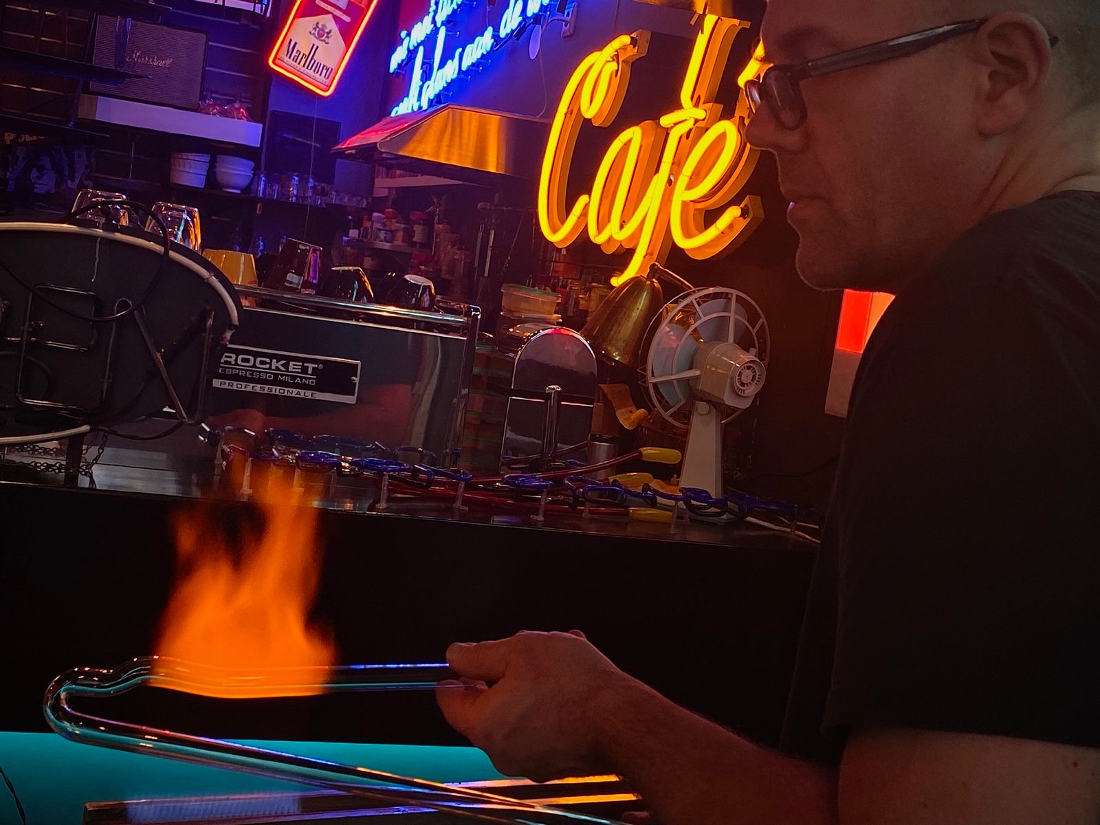 Neon glasblazer en kunstenaar